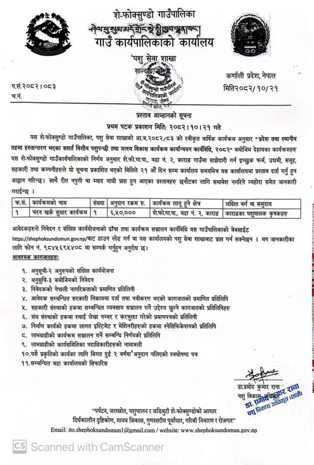 प्रस्ताव आव्हानको सूचना