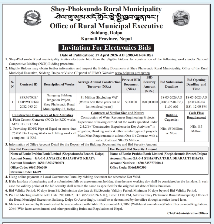 वोलपत्र आह्वान गरिएको सम्बन्धी सूचना (IFB No. 20 - 1S2E)