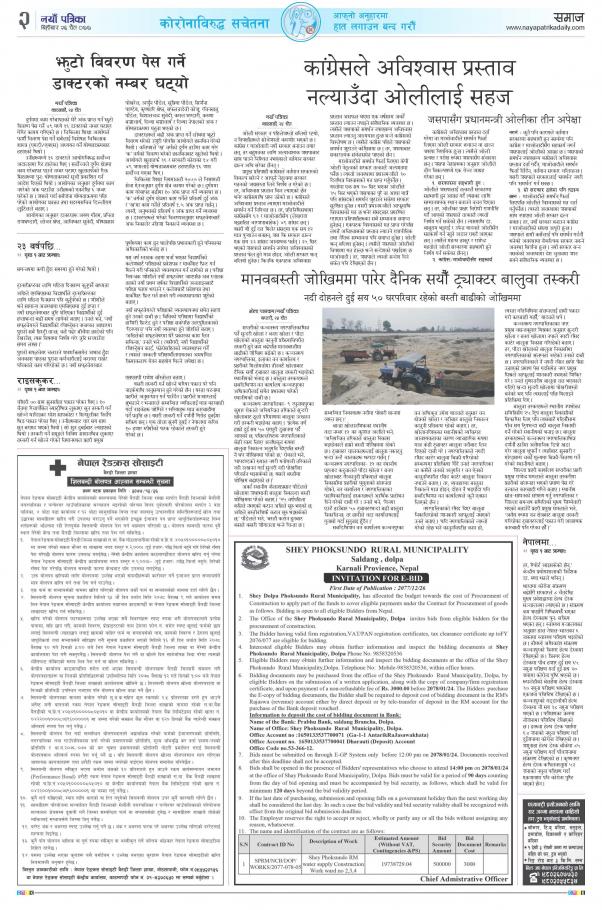 » टेन्ड्र आब्हानकाे सुचना ।