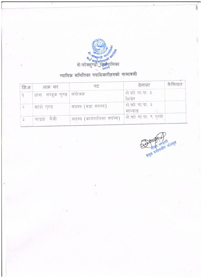 शे फाेक्सुणेडाे गाउँपालिकाका न्यायिक समितिका पदाधिकारीहरुकाे नामावली