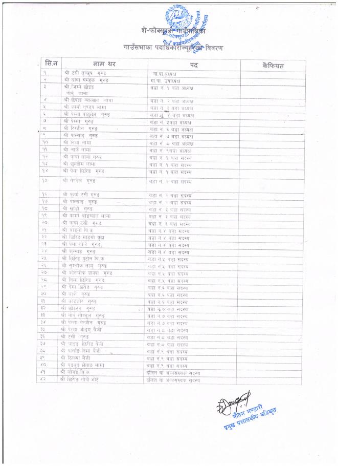 शे फाेक्सुण्डाे गाउँपालिकाका गाउँसभाका पदाधिकारी ज्यूहरुकाे विवरण