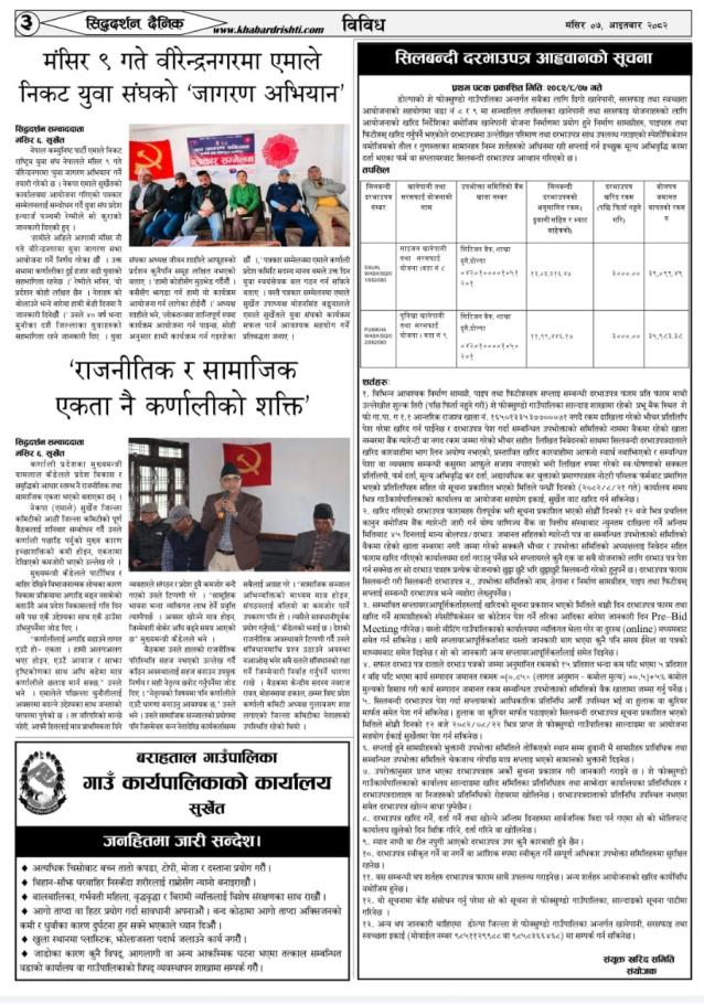 » सिलबन्दी दरभाउपत्र आहृवानको सूचना