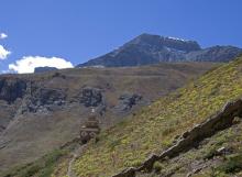 According to legend, 824 years ago Buddhist ascetic Drikung Kyobpa Jigten Gonpo sent his disciple Druptop Shinge Yeshe to explore Shey. Yeshe subdued the fierce mountain spirit and transformed it into the abude of Chakrasamvara - the pure Crystal Mountain. During annual circumambulation (kora) pilgrimages, Dolpo people circumambulate Crystal Mountain.